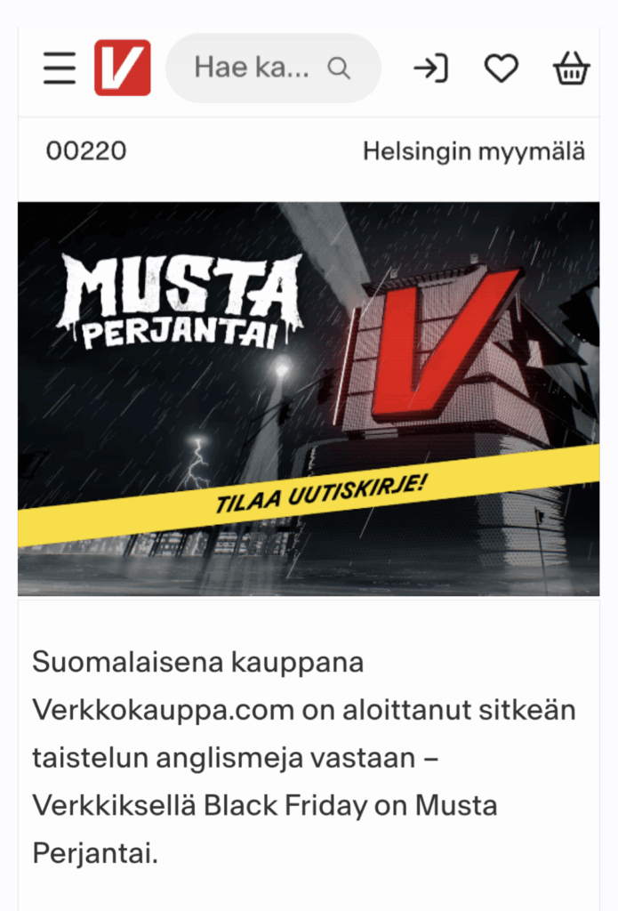 Black Fridayn historiaa esitellessään Verkkokauppa.com ilmoittaa käyttävänsä siitä nimeä Musta perjantai ja kertoo aloittaneensa suomalaisena yrityksenä taistelun anglismeja vastaan.